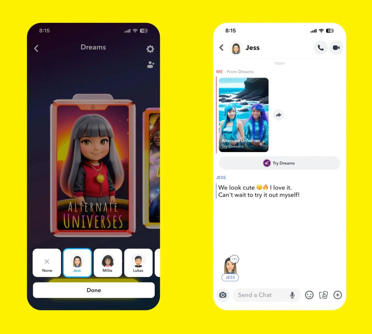 Snapchat+ just got cooler for its 7 million subscribers! Now, they can create and send their own AI-generated images. Think of fun stuff like "a cheese planet" or "beach day," and Snapchat turns it into a picture. Plus, they added a sweet update to their Dream selfie feature – you can now include your pals in these funky AI selfies. And if you've ever taken a too-close pic of your dog and wished for more background, their new AI tool can fix that by zooming out and filling in the details.