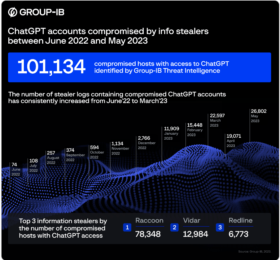 Over 100,000 OpenAI ChatGPT accounts have had their credentials spill onto the dark web like a clumsy waiter dropping a tray of drinks. All this happened in just one year, from June 2022 to May 2023.