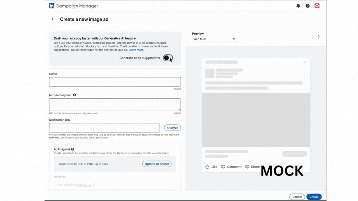 LinkedIn is trying on some new fancy pants with generative AI and fresh ad formats. They're testing a smarty-pants AI feature they've named "AI Copy Suggestions". This thing helps cook up ad headlines and texts based on your LinkedIn Page, pretty neat. You've got five flavors to choose from, tweak to taste, and slap on your ad campaign. Only a lucky few in North America get to play with this toy right now, but LinkedIn has bigger plans to roll it out across the globe in different languages.