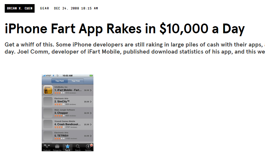 When the iPhone came out, one of the best selling apps was a fart app.