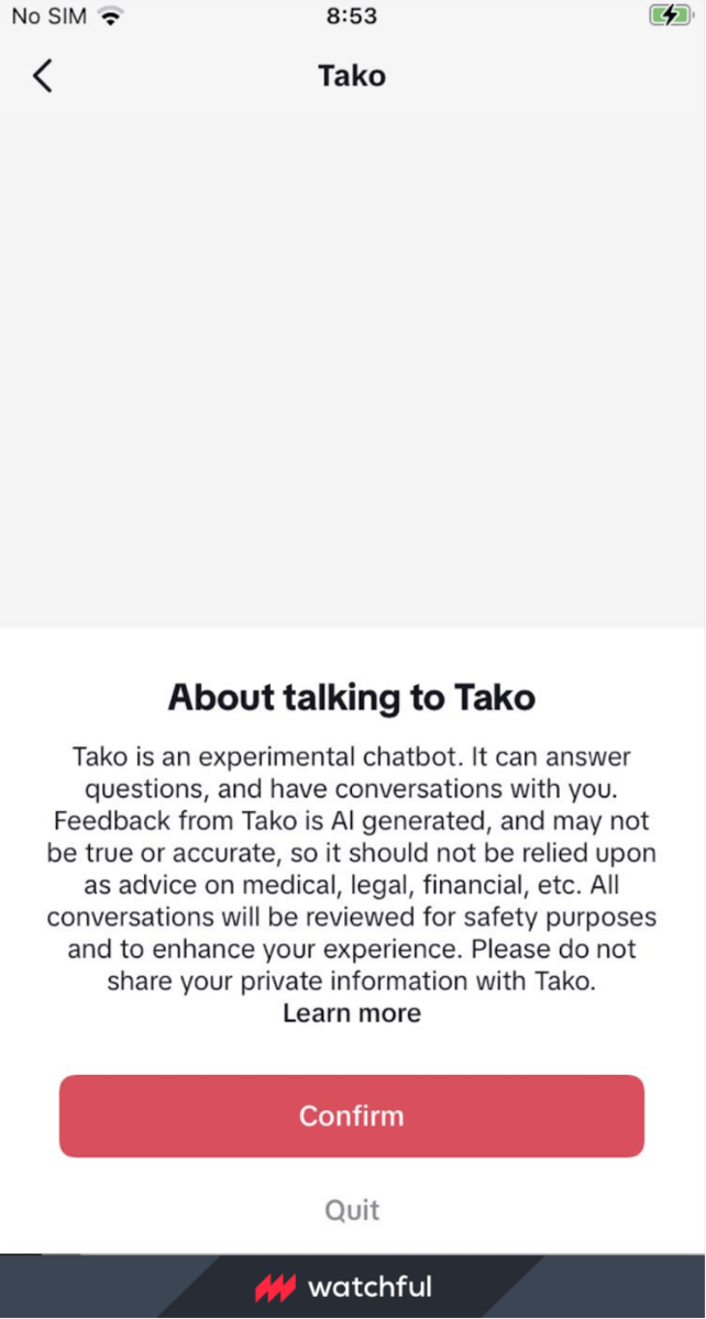 Word on the street is Tako was found in action by the smart cookies over at Watchful.ai. TikTok has confirmed that, yep, they're testing Tako, but it's not quite ready for the big time in the U.S. It's got its training wheels on in other global markets, though, and it won't be popping up for the kiddos on the app.